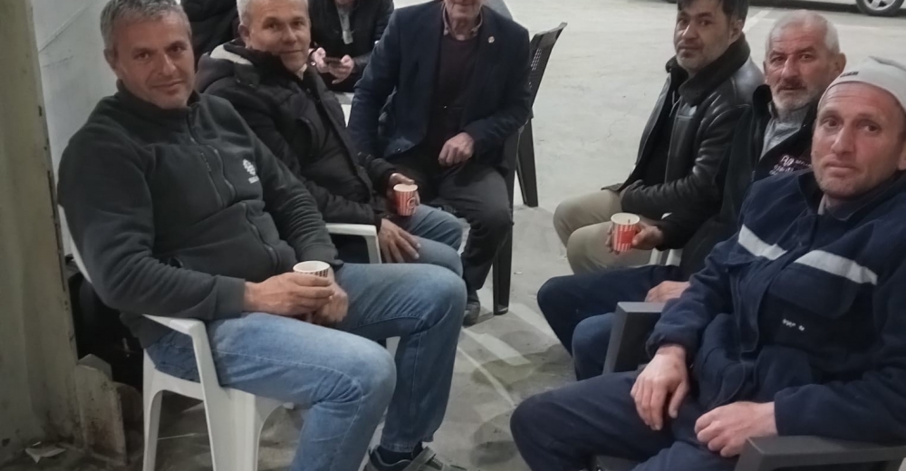 Saadet partisi Beypazarı ilçe başkanı İsmail Tiftik SSS yıldızlar holding Doruk madencilik işçilerine destek ziyaretinde bulunarak 'maden işçilerimixin haklarını alabilmek etini temenni ediyoruz. parti olarak her zaman mazlumlardan yanayız. İşçilerimizin yanındaız açıklamasında bulundu.