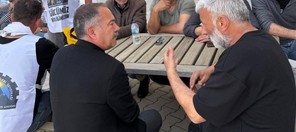 Eskişehir Mihallıccık Koyunağılı maden sahasından haklarını almak için Ankara'ya yürüyen maden işcileri Ayaş ilçesine yaklaştı. Maden isçileri CHP Ayaş İlçe teşkilatı karşıladı.